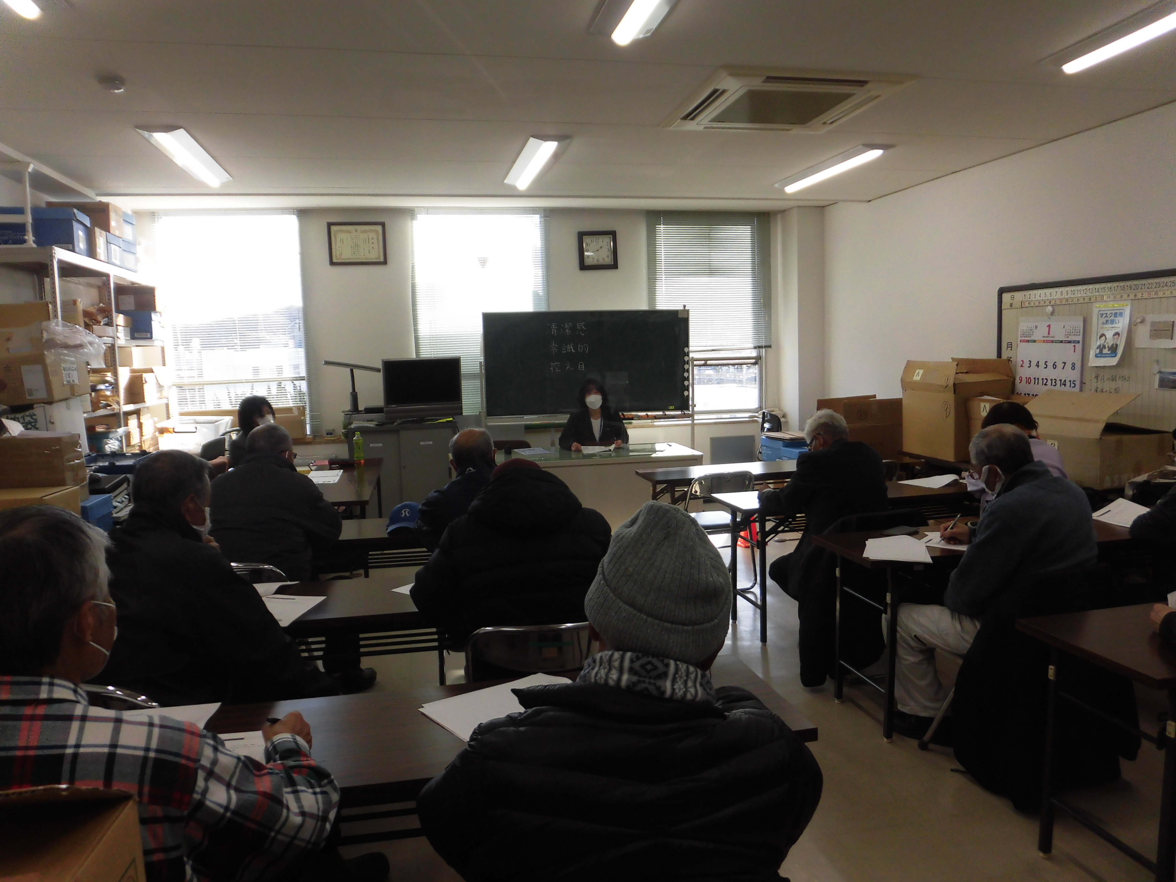2022.1.14 : 接遇講習会実施報告 会員の皆様を対象に以下の接遇講習会を実施しました。 ※今回も、新型コロナウィルス感染拡大防止のため、手指消毒、検温、 マスク着用等の対策及び少人数での開催としました。 (1)接遇マナー講習会 月日 :1月14日(金) 会場 :いわき市シルバー人材センター会議室 内容 :庭木剪定業務就業者 接遇マナー講習 講師 :ニチイ学館いわき支店 鈴木 まゆみ氏 志賀 久美氏 |