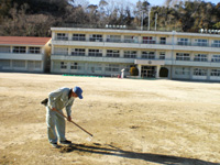 主に給食の準備・片付けや校庭等の草引きや植木の管理等を行っております。