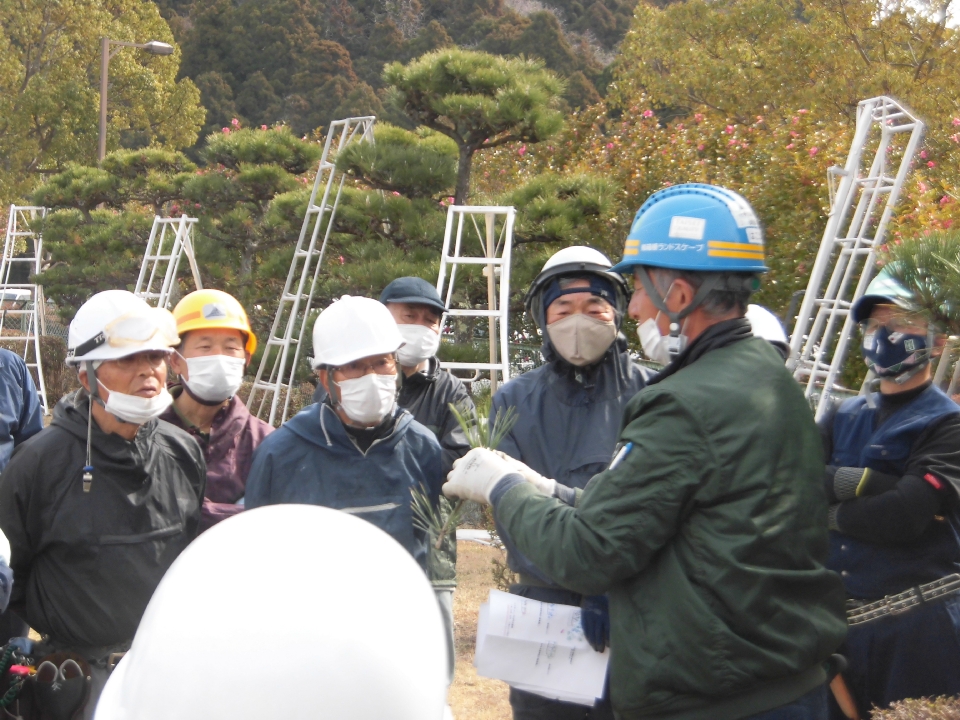 2022.3.10 : クロマツ剪定講習会実施報告 会員の皆様を対象にクロマツ剪定講習会を実施しました。 ※今回も、新型コロナウィルス感染拡大防止のため、手指消毒、検温、 マスク着用等の対策及び少人数での開催としました。 (1)クロマツ剪定講習会(座学・実技) 月日 :2月16日(水)、2月17日(木) 会場 :いわき市総合運動公園内 陸上競技場 内容 :クロマツの剪定における知識と技術について 講師 :有限会社箱根ランドスケープ 代表取締役 箱根 保光 氏 (2)クロマツ剪定認定試験 月日 :2月18日(金) 会場 :いわき市総合運動公園内 陸上競技場 内容 :剪定技能者の後継者育成を図る為の技術認定試験 |