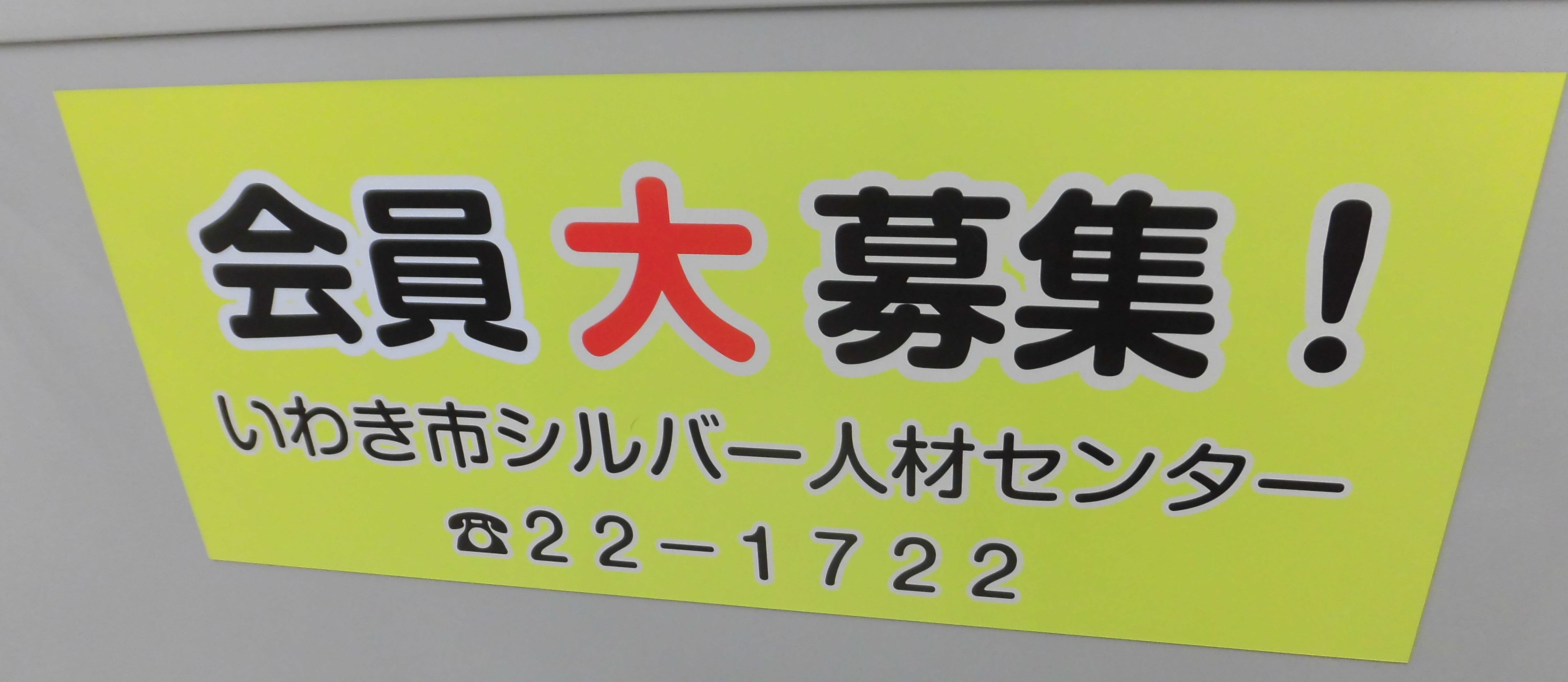 2022.8.26 : ”会員募集中”のマグネットシートについて 会員の皆様へ 新規会員を募集するためのマグネットタイプの「会員募集中」の看板を 購入しました。 ご自身のお車に貼って頂ける方おりましたら、事務局に来局ください。 <大きさ> 縦:25cm 横:60cm ※自家用車に張るタイプの物です。 ※添付の”会員募集中看板”のようなマグネットシートです。 |